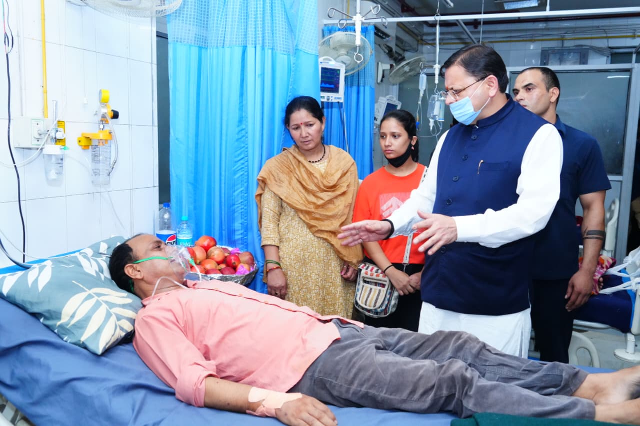 मुख्यमंत्री श्री पुष्कर सिंह धामी ने शनिवार को राजकीय दून मेडिकल कॉलेज चिकित्सालय पहुंचकर वहां भर्ती वरिष्ठ पत्रकार श्री मोहन भुलानी से भेंट की और उनका कुशलक्षेम जाना।