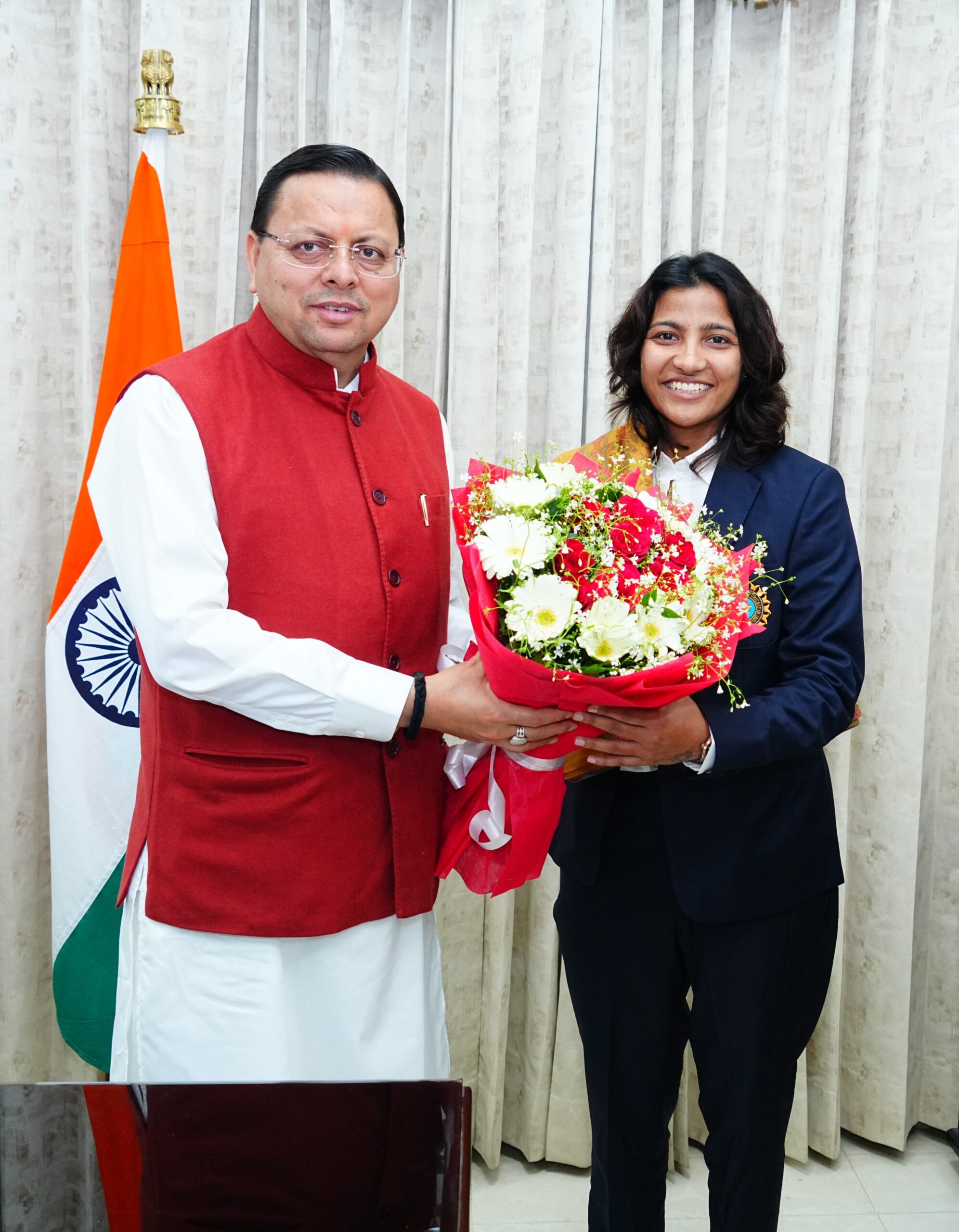 मुख्यमंत्री श्री पुष्कर सिंह धामी से आज मुख्यमंत्री आवास में महिला क्रिकेट विश्व कप विजेता टीम की सदस्य एवं उत्तराखंड की गौरव, क्रिकेटर स्नेह राणा ने शिष्टाचार भेंट की।